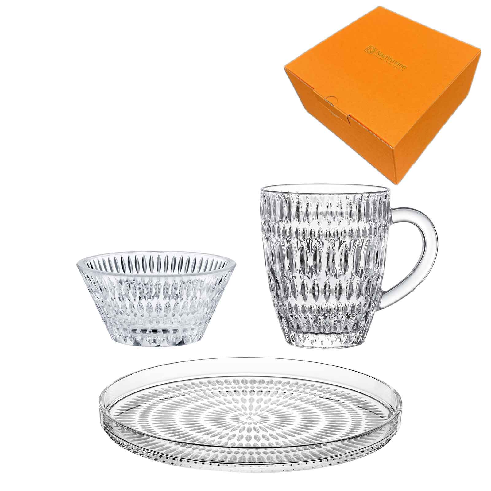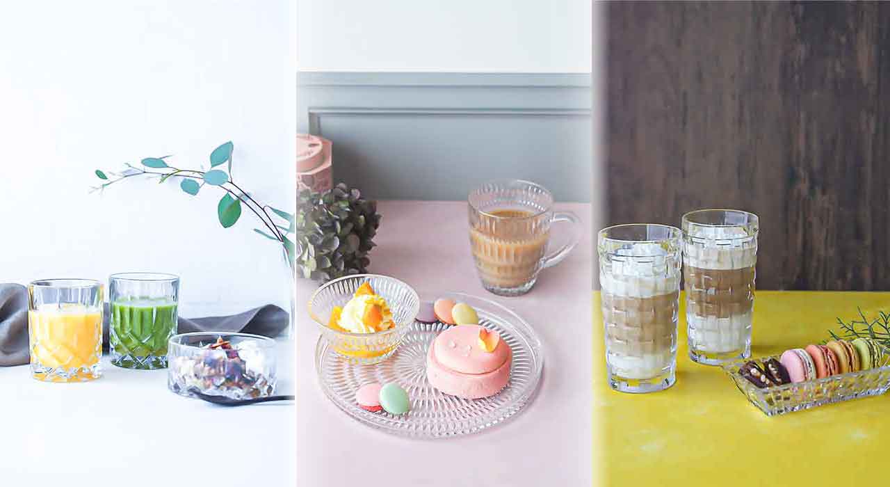 印象的でモダンなカットが人気のナハトマンが展開するコレクションの中から、ドリンクとフードを一緒に楽しめるセットを3タイプお届けいたします。 透明なクリスタルはお手持ちの食器との相性も良く、ミックスマッチコーディネートも気軽に楽しめますが、同じ柄の同一シリーズでお使いいただくとさらに統一感が生まれ、美しさや輝きが際立ちます。