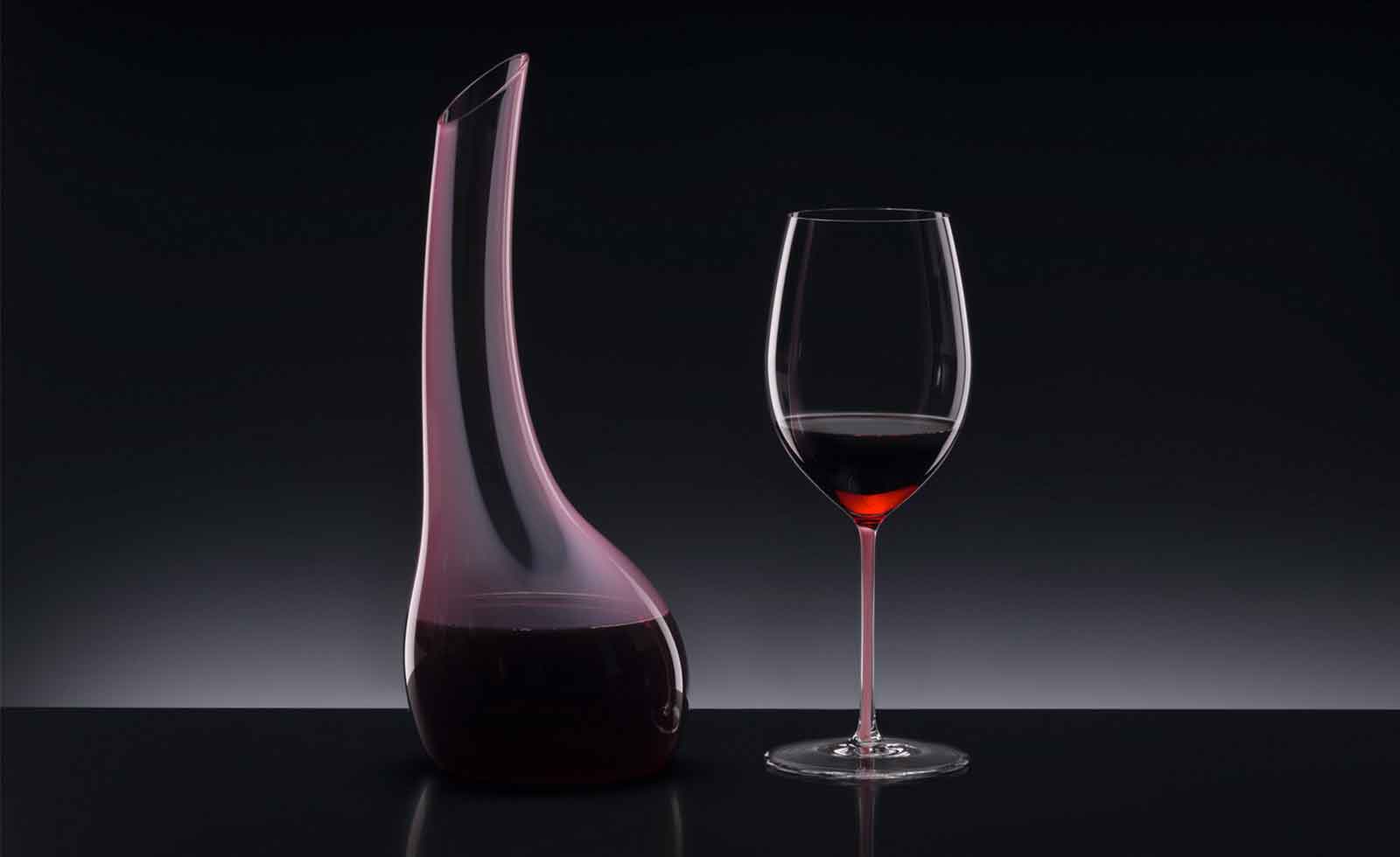 透明のクリスタルガラスで作られたオリジナルの『コルネット』に、ピンクのカラークリスタルを配した優しい色合いです。 見た目の美しさだけでなく、手にしっかり馴染む機能的な形状で、細身でコンパクトなので日本の食卓や、収納スペースに使いやすいデザインです。 これらのデカンタは、全てオーストリアのリーデル本社に隣接する工房で熟練の職人によって一点一点手作りされ、ひとつとして同じものがない逸品です。