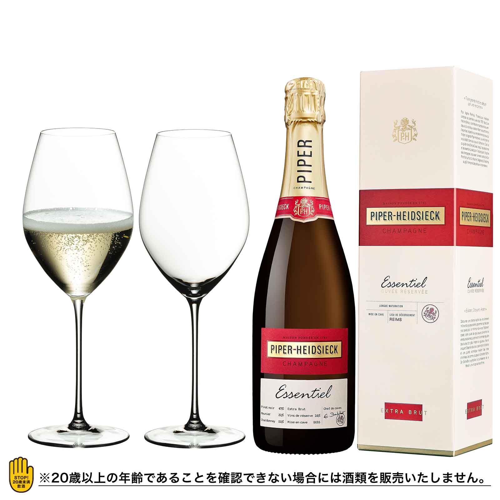 <マリアージュセット> リーデル・ヴェリタス シャンパーニュ・ワイン・グラス ペア+パイパー・エドシック エッセンシエル エクストラ・ブリュット 750ml